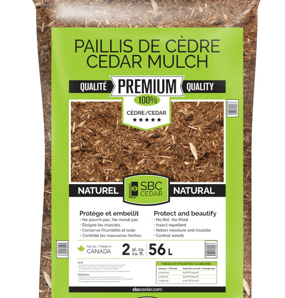 La pose d’un paillis 100% cèdre sur le sol de votre plate-bande, autour de votre patio et de la piscine, sous les arbres ou à tout autre endroit où se développent vos plantes ornementales, comporte une multitude d’avantages, et ce, autant du point de vue écologique que phytosanitaire. En plus d’être très décoratif par son esthétisme et sa couleur, le paillis protège le sol en conservant son humidité, et par le fait même, il préserve vos végétaux de la sécheresse. De plus, une couverture de paillis amoindrit les écarts thermiques et protège les plantes des températures extrêmes se diffusant dans le sol. De ce fait, les racines demeurent au frais au cours de l’été et sont mieux protégées contre le gel en hiver. Un tel paillis, à mesure qu’il se décomposera, fournira au sol des éléments minéraux et de la matière organique, lesquels sont bénéfiques autant pour la structure que pour l’équilibre biologique et chimique du sol. De plus, un sol ainsi protégé risque moins de se compacter et de s’éroder.