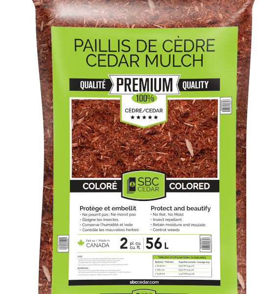 La pose d’un paillis 100% cèdre sur le sol de votre plate-bande, autour de votre patio et de la piscine, sous les arbres ou à tout autre endroit où se développent vos plantes ornementales, comporte une multitude d’avantages, et ce, autant du point de vue écologique que phytosanitaire. En plus d’être très décoratif par son esthétisme et sa couleur, le paillis protège le sol en conservant son humidité, et par le fait même, il préserve vos végétaux de la sécheresse. De plus, une couverture de paillis amoindrit les écarts thermiques et protège les plantes des températures extrêmes se diffusant dans le sol. De ce fait, les racines demeurent au frais au cours de l’été et sont mieux protégées contre le gel en hiver. Un tel paillis, à mesure qu’il se décomposera, fournira au sol des éléments minéraux et de la matière organique, lesquels sont bénéfiques autant pour la structure que pour l’équilibre biologique et chimique du sol. De plus, un sol ainsi protégé risque moins de se compacter et de s’éroder.